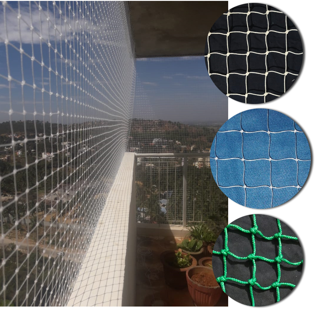 Our services include Balcony Safety Net, Children Safety Net, Construction Safety Net, Duct Area Safety Net, Industrial Safety Net, Swimming Pool Safety Net, Staircase Safety Net, Monkey Safety Net, Glass Safety Net, Coconut Safety Net, Mosquito Net, Cricket Practice Net, All Sports Practice Nets, Bird Spikes, Anti Bird, Pigeon Nets for Balconies, Bird Protection Nets, Agro Shade Nets, Plant Support Netting, Garden Netting, Shade Nets, Car Parking Safety Net etc...